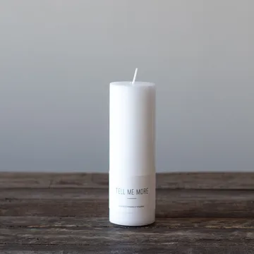 Tell Me More świeczka stearynowa L 15 cm od szwedzkiej marki Tell Me More ma certyfikat Nordic Swan i jest wykonana w 100% z stearyny. Świeca blokowa jest elegancka i piękna w swojej prostocie, ale może być połączona z przezroczystym świecznikiem, aby stworzyć piękne światło w przedpokoju lub na stole w salonie.