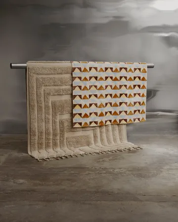 Dywan wełniany Kask 300x400 cm od Tinted jest wykonany z miękkiej wełny nowozelandzkiej w kremowym odcieniu karmelu. Ten ręcznie tuftowany dywan ma odważny architektoniczny kształt z plecionymi frędzlami, co nadaje mu wyrazisty, ale jednocześnie delikatny wygląd. Grube frędzle w kontraście do nieco przesadzonego designu czynią Kask dynamicznym elementem przyciągającym wzrok, który zaskakująco dobrze wtapia się w otoczenie. Każdy dywan ma swoją własną unikalną osobowość.