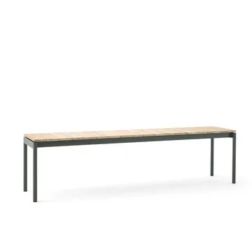 Ławka Ville AV28 large 180x40 cm od &Tradition jest wykonana z paneli z drewna tekowego na solidnej stalowej ramie. Zaprojektowana przez Anderssen & Voll, ta ławka wzmacnia charakterystyczną estetykę Ville i oferuje przyjemną temperaturę przy pierwszym dotyku.