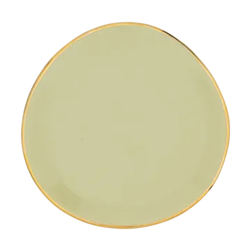 Talerz Good Morning 9 cm od Urban Nature Culture to mały talerzyk o urokliwym, nierównym kształcie i ręcznie malowanym złotym brzegu. Mini talerzyk może być używany do serwowania na przykład małych wypieków i pralinek. Pasuje do pozostałej porcelany z serii Good Morning od Urban Nature Culture.