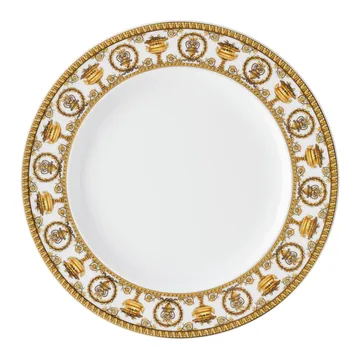 Kolekcja I love Baroque to współpraca między producentem porcelany Rosenthal a ikonicznym domem mody Versace. Skomplikowany wzór ze złotymi zdobieniami nadaje temu talerzowi metalowemu luksusowy wygląd, który najlepiej komponuje się ze złotymi sztućcami i skrzącymi kieliszkami z kryształu. Talerz jest wykonany z wytrzymałej porcelany polnej w fabryce Rosenthal w Niemczech, stanowiąc idealne połączenie solidnego niemieckiego rzemiosła i ekstrawaganckiego włoskiego designu.