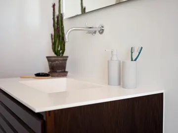 Kubek na szczoteczki do zębów Solo od Zone Denmark nadaje Twojej łazience elegancki i stylowy wygląd. Wykonany w 100% z porcelany, ten kubek na szczoteczki do zębów jest zarówno trwały, jak i estetycznie atrakcyjny. Idealny do organizowania szczoteczek do zębów lub innych drobiazgów oraz stanowi stylowy dodatek do Twojej codziennej rutyny.