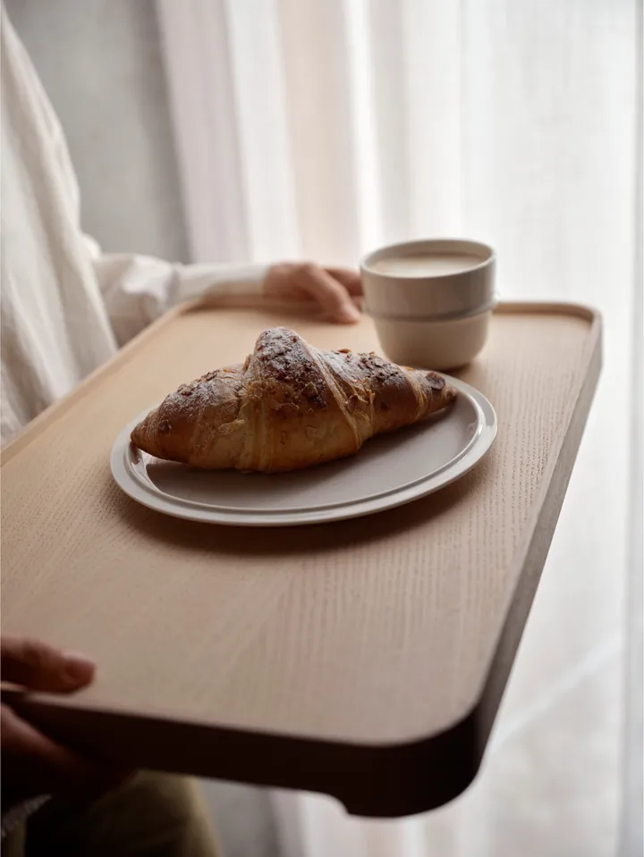 Taca Inu od Zone Denmark jest wykonana z drewna jesionowego z białym, barwionym lakierem podkreślającym naturalną strukturę drewna. Idealna do podawania śniadania w łóżku lub lunchu na tarasie. Składane nogi zapewniają stabilność, a podniesiony brzeg utrzymuje wszystko na miejscu. Kiedy taca nie jest używana, nogi można łatwo złożyć dla wygodnego przechowywania.