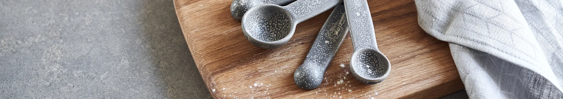 Dzięki zestawowi pomiarowemu ze stali nierdzewnej lub tworzywa sztucznego możesz postępować zgodnie z przepisem co do joty. Uzupełnij swój zestaw o dodatkową miarkę decylitrową lub zainwestuj w zupełnie nowy zestaw.
