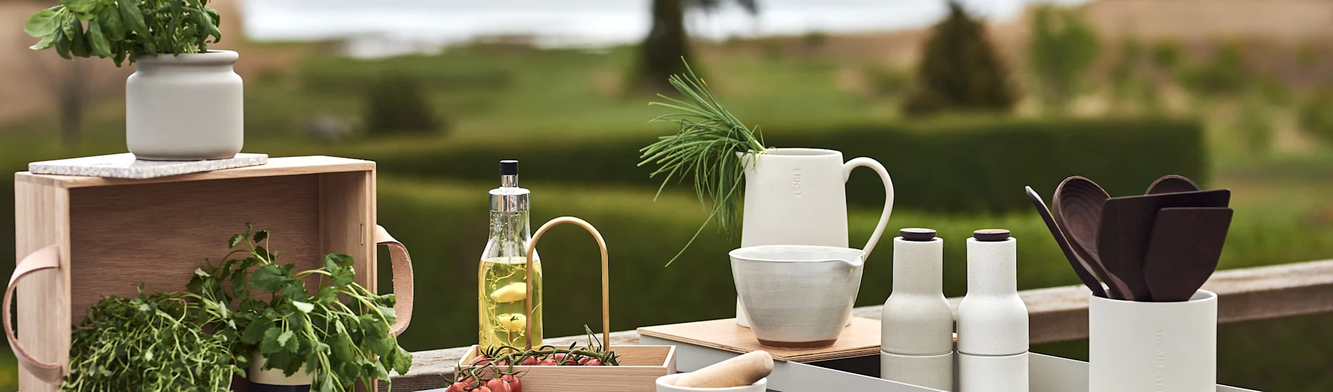 BROSTE COPENHAGEN Nordic Sand słoik z pokrywką | SERAX Przybory kuchenne Pure | FERM LIVING Petite solniczka z łyżeczką |