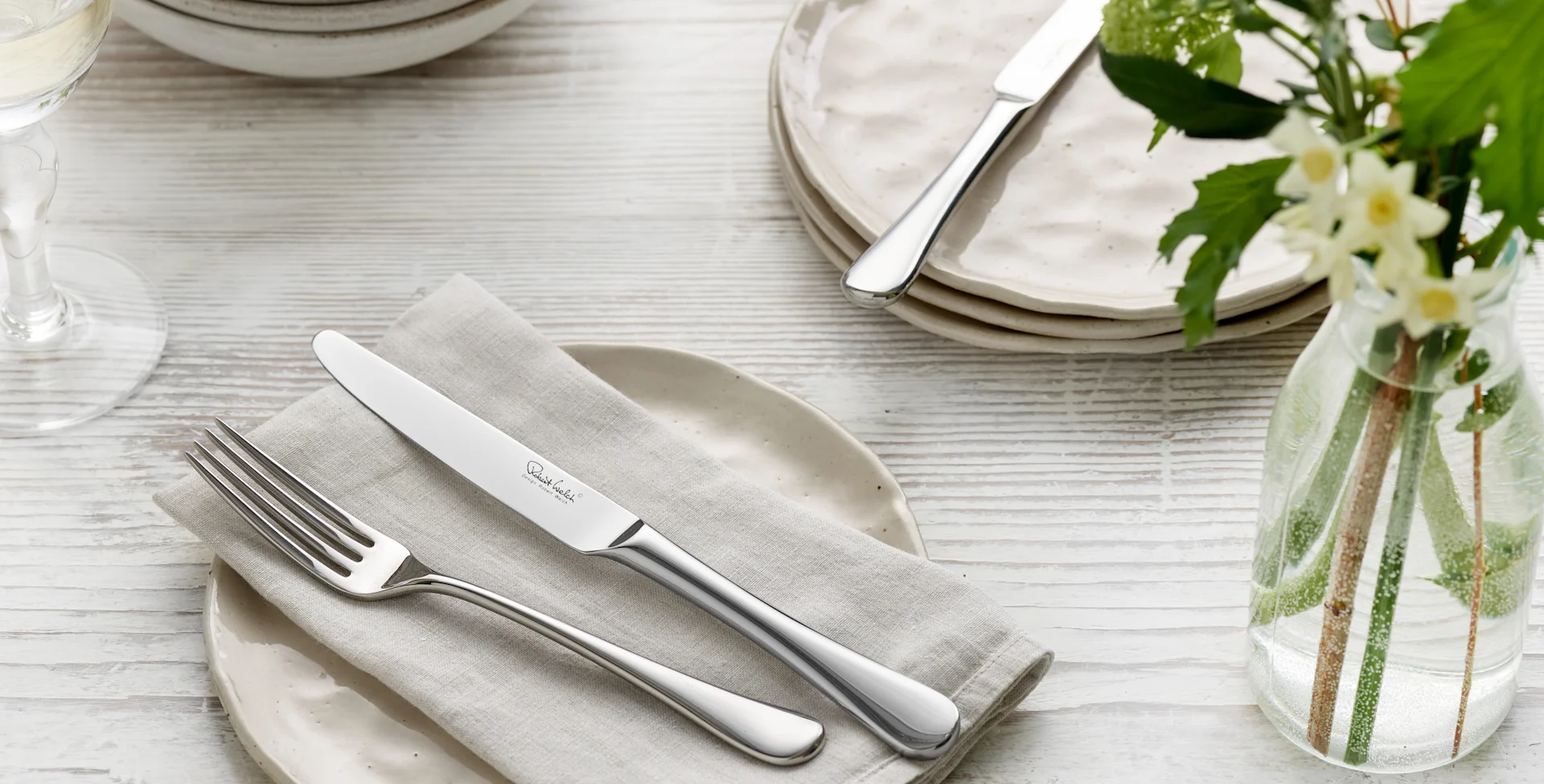 Nasza szeroka oferta sztućców obejmuje sztućce wykonane z różnych materiałów. Przy wyborze sztućców kluczowe jest rozważenie materiału, ponieważ może to wpływać na sposób użytkowania, pielęgnacji i przechowywania sztućców. Twardsze materiały, takie jak stal nierdzewna, sprawiają, że sztućce są mniej podatne na uszkodzenia, podczas gdy miękki metal, taki jak srebro, może łatwiej ulegać uszkodzeniom. Przeczytaj dalej, aby dowiedzieć się więcej o materiałach sztućców.